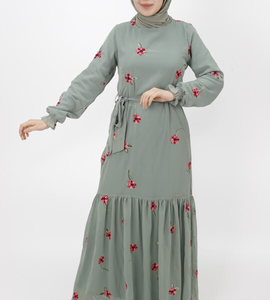 3038 Nakışlı Şifon Kumaş Elbise-ÇAĞLA