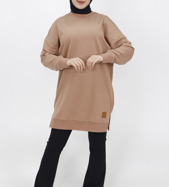 30644 Puane 2 İplik Kumaş Basic Sweatshirt-camel