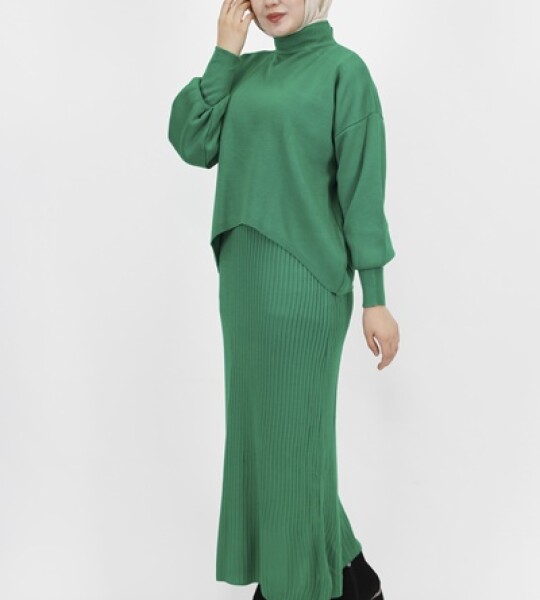 1034 Triko Kumaş İçlikli Elbise-YEŞİL