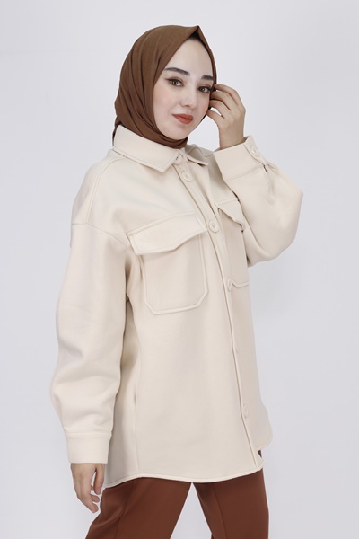 | 3 ip kumaş,içi pamuklu,gömlek yaka,düğmeli,çift cepli,düşük omuz,geniş kol,gömlek ve ceket olarak kullanıma uygun üründür,mankenin giydiği beden:38,kumaş değerleri;&65 cotton %35 polyester,ürün ölçüleri;göğüs:52,bel:52,basen:56,boy:82cm,mankenin ölçüleri;boy:168cm,göğüs:85,bel:65,basen:90,kilo:55 |