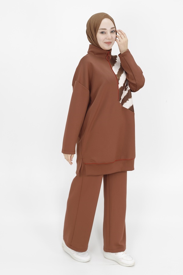 10390 Puane Fermuar Detaylı Scuba Kumaş Sweatshirt-Kahve için 0 inceleme