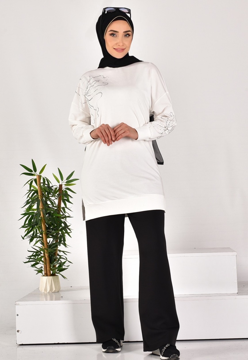 10592 PUANE İKİ İPLİK KUMAŞ TAŞ DESENLİ SWEATSHIRT-EKRU için 0 inceleme