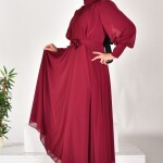 12520 PUANE ŞİFON KUMAŞ PİLELİ TESETTÜR ELBİSE-MOR için 0 inceleme