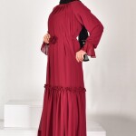 12521 PUANE ŞİFON KUMAŞ KOL DETAYLI TESETTÜR ELBİSE-MOR için 0 inceleme