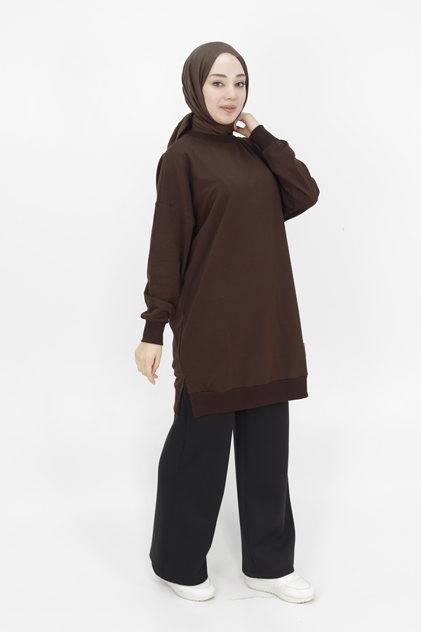 30644 Puane 2 İplik Kumaş Basic Sweatshirt-Kahve için 0 inceleme