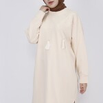 6950 İnci Ve Püskül Detaylı 2 İp Kumaş Sweatshirt-BEJ için 0 inceleme