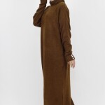 7455 Kol Düğme Detaylı Boğazlı Triko Elbise-KAHVE için 0 inceleme