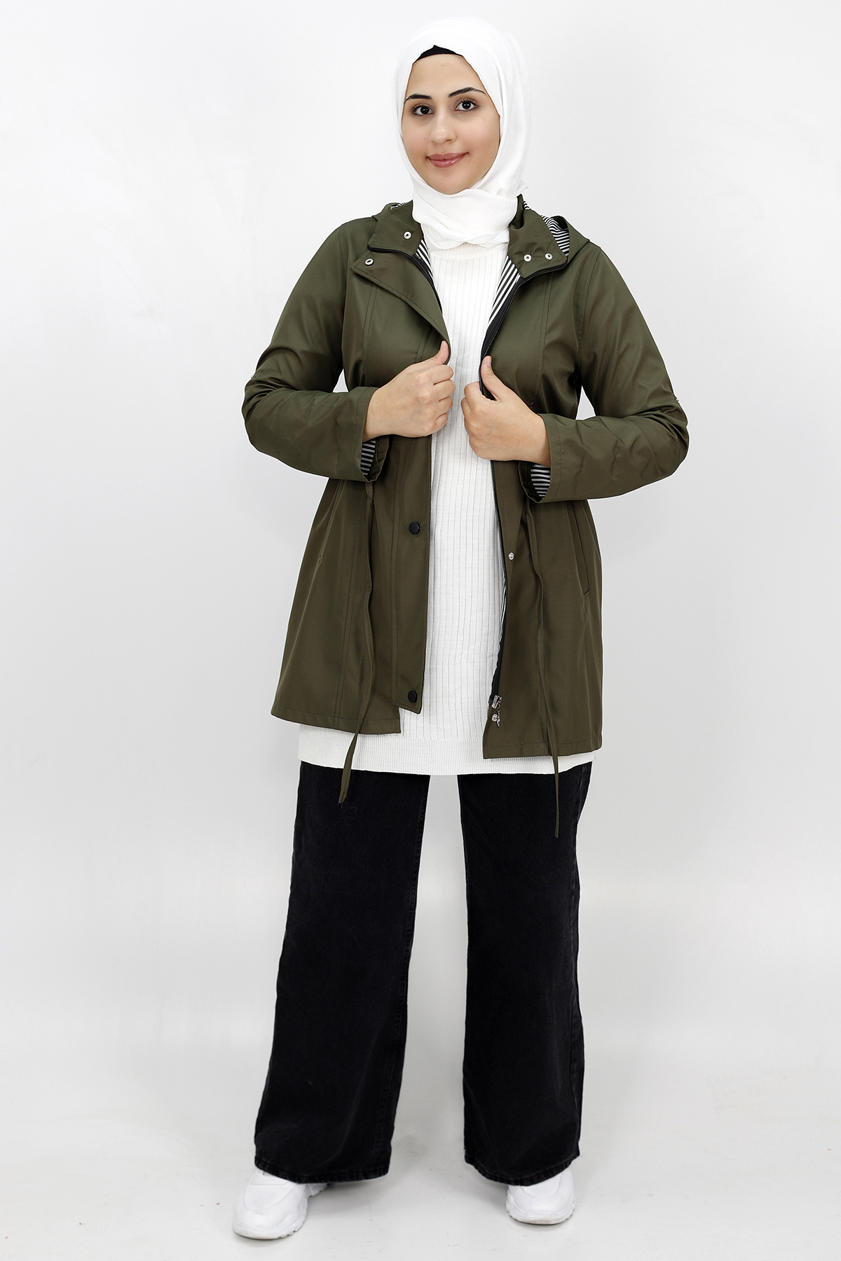 9003 Bondit Kumaş Kısa Boy Trençkot-Haki için 0 inceleme
